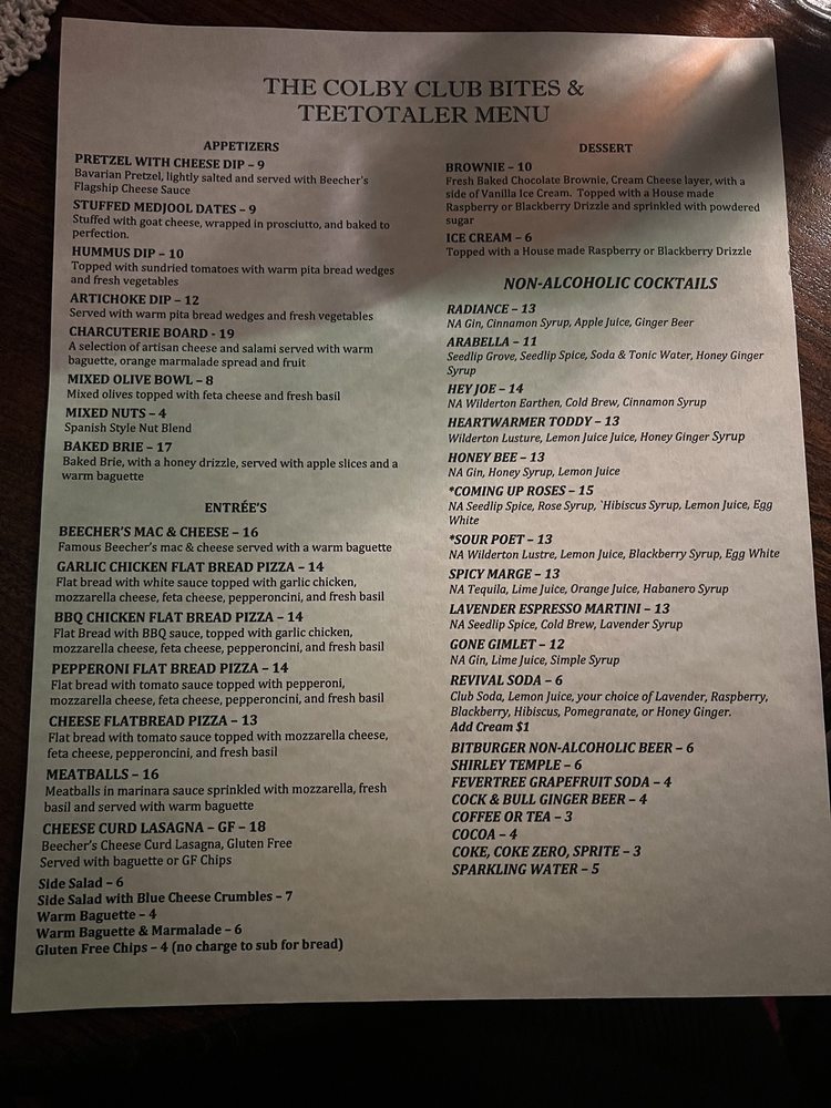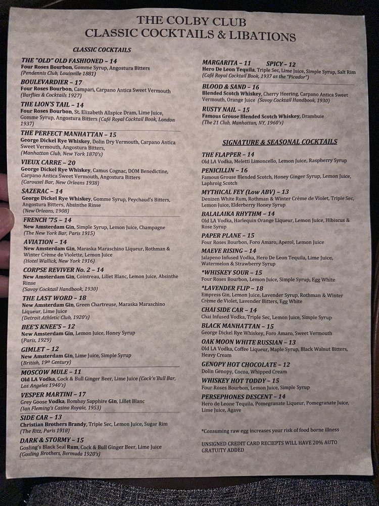 The Colby Club Menu